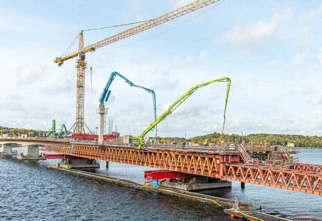 The new bridge is a 750-meter-long post-tensioned concrete bridge with 15 spans and 16 bridge piers, whose foundations are anchored in the water. This posed a technical challenge due to the complex foundation work required. The bridge was anchored into the bedrock using 198 steel piles, each 800 millimeters in diameter, driven down to a depth of 40 meters to reach the bedrock.